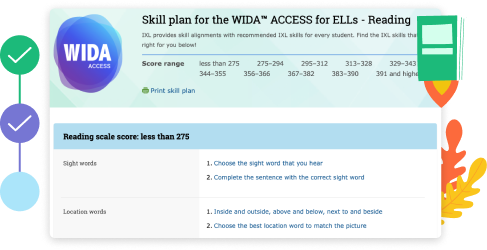 Eliminate the guesswork in pinpointing each English learner's starting point in math and ELA with the IXL Assessment Suite. After completing the IXL Diagnostic, students receive personalized action plans that surface key skills to focus on, ensuring a clear path forward. These tailored plans empower students to close learning gaps and make measurable progress, setting them up for success.